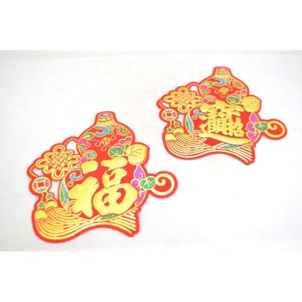 メール便ok 福飾 瓢箪型 中華ステッカー ひょうたん 招財進寶 18cm