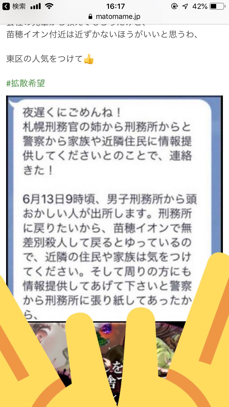 Tweet 刑務所に戻りたい 北海道札幌市東区苗穂イオン付近に無差別