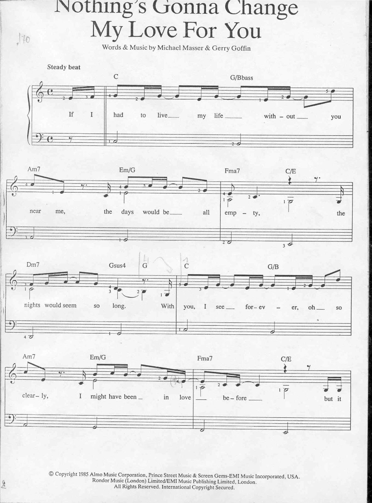 Masser Nothing S Gonna Change My Love For You Sheet Music For Voice Piano Or Guitar
