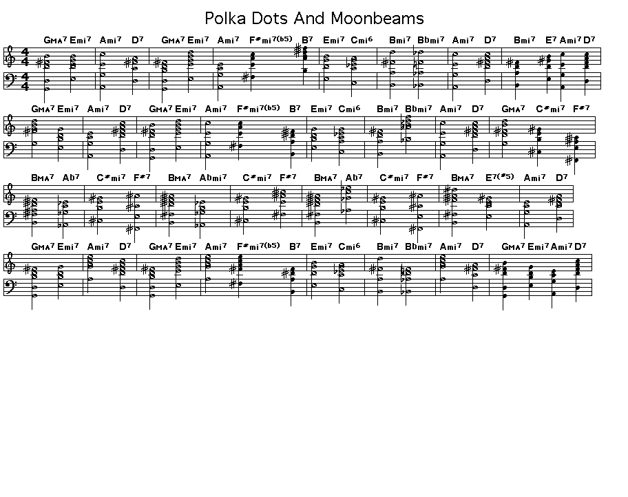 A great old standard with classic jazz chord changes and an interesting bridge. 50 videos play all mix polka dots and moonbeams chord progression jazz standard backing track play along youtube polka dots and moonbeams duration. For chords like bb6 9 obviously the sixth and the ninth are important so is the keynote bb. D em7 a7 d f m g g f a7 13 a7 the music started and was i the perplexed one.